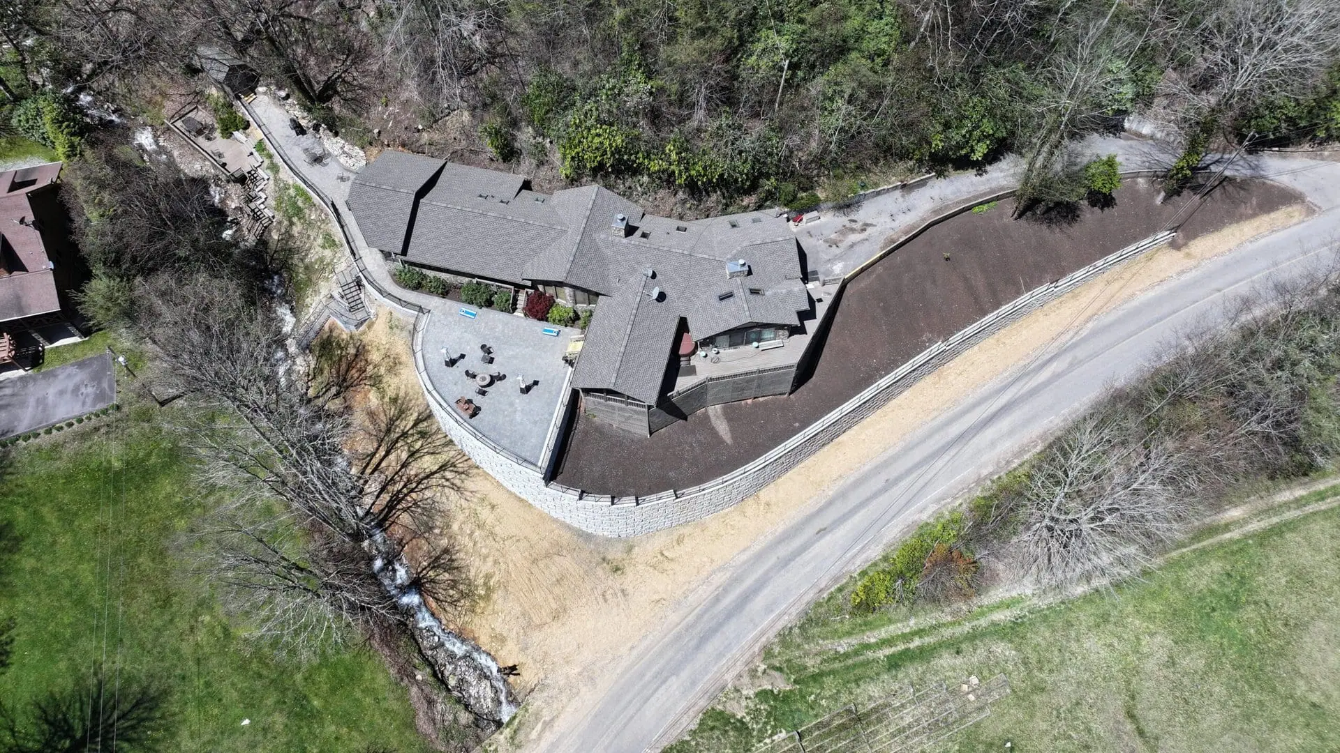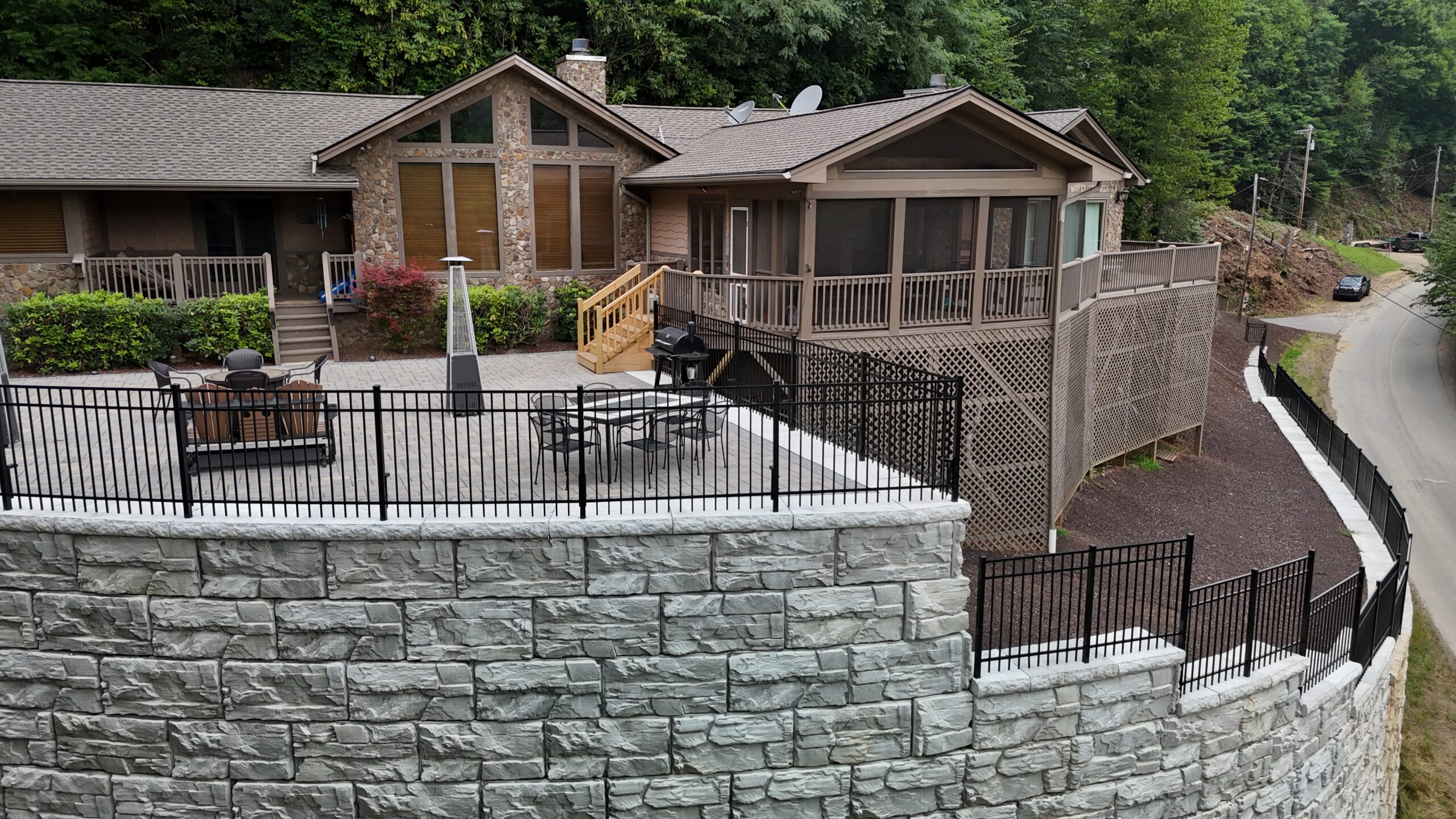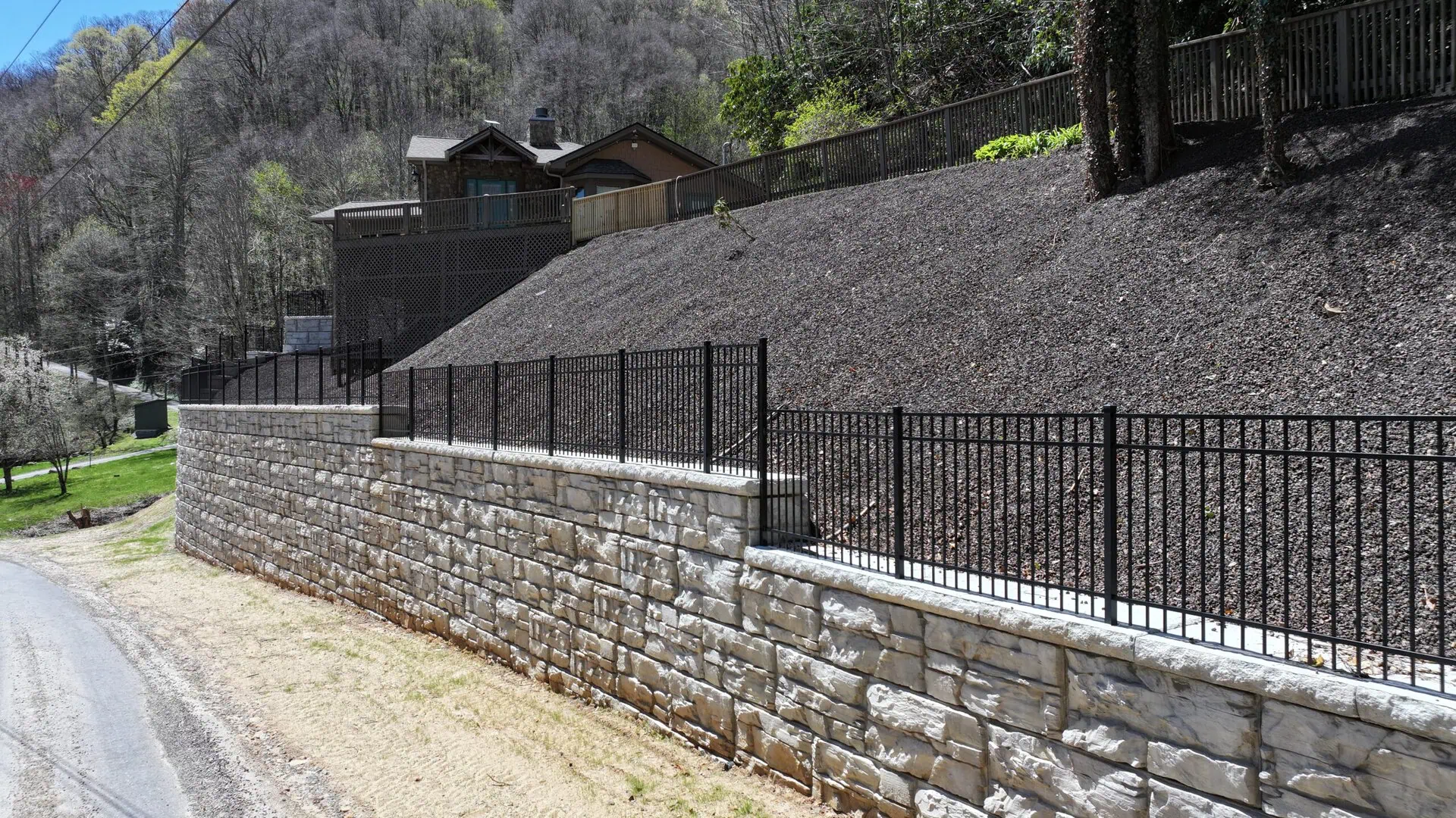 While safety and performance were paramount to this project, it helped that the blocks integrated well with the property’s landscape. MagnumStone’s rugged, natural stone appearance suited the mountainous backdrop of Maggie Valley. The blocks blend into the forested terrain and add to the home’s rustic aesthetic.