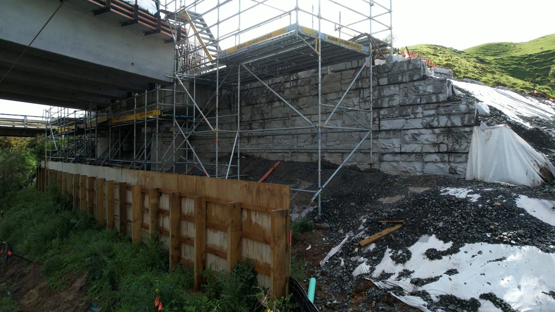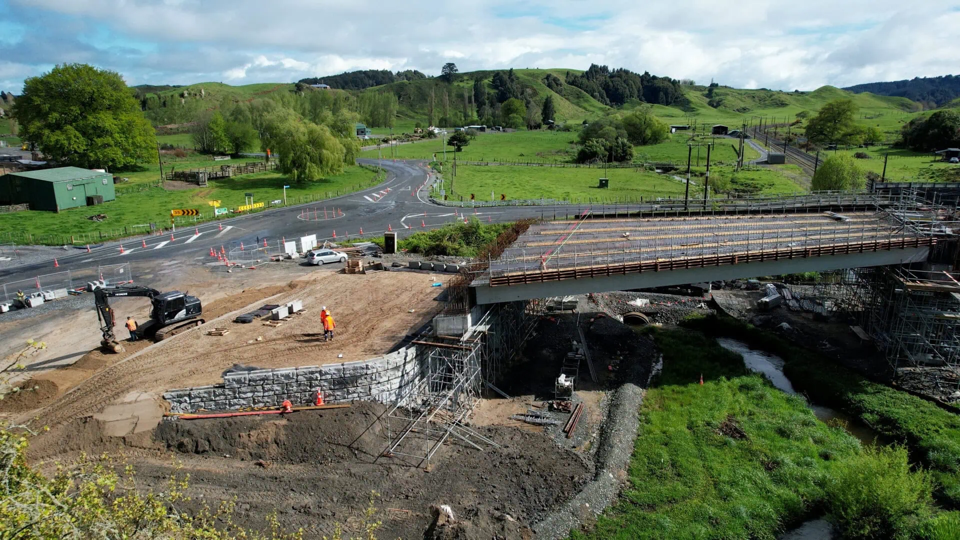 The MagnumStone walls played a vital role in raising the highway to match the height of the new bridge structure. This was part of a broader goal to enhance long-term safety and reliability of access through the Kopaki region. The project aimed to enhance critical infrastructure without disrupting the North Island Main Trunk Railway below. MagnumStone’s modular blocks were selected to build the bridge abutments because of the system’s proven performance, strength and versatility.